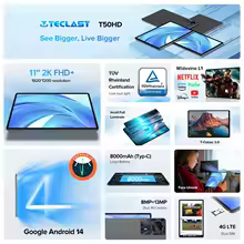 teclast T50hd Android 14 Tablet, 11 “2K Fhd +, Max 14Gb Ram, 256Gb Rom, met sim